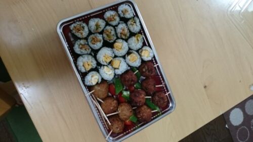 ●8月某日: 世界陸上最終日! 私が女子マラソンを見ている間に、夫がサクを手伝わせながら弁当制作。今回は、細巻(納豆と卵焼き2種類)。うまく巻きあげる人だね~。味見用にもらったのを食べながら「おかずは何?」と聞くと(←マラソンCM中)、「これだ…